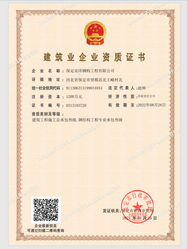 公司主要致力于鋼結(jié)構(gòu)設(shè)計(jì)、制作、安裝、銷售為一體的鋼結(jié)構(gòu)施工專業(yè)企業(yè)。成立于2010年,注冊資金1200萬元。公司擁有國內(nèi)先進(jìn)的數(shù)控自動焊接設(shè)備、H鋼結(jié)構(gòu)生產(chǎn)線、CZ鋼快速切換一體機(jī)、自動剪切壓板機(jī)等,優(yōu)良的制作加工車間及檢測設(shè)備。公司秉承“質(zhì)量求生存,管理出效益”發(fā)展理念,組建了一支高素質(zhì)、高水平的團(tuán)隊(duì)以及責(zé)任明確、職責(zé)清楚、獎罰分明的管理體系。